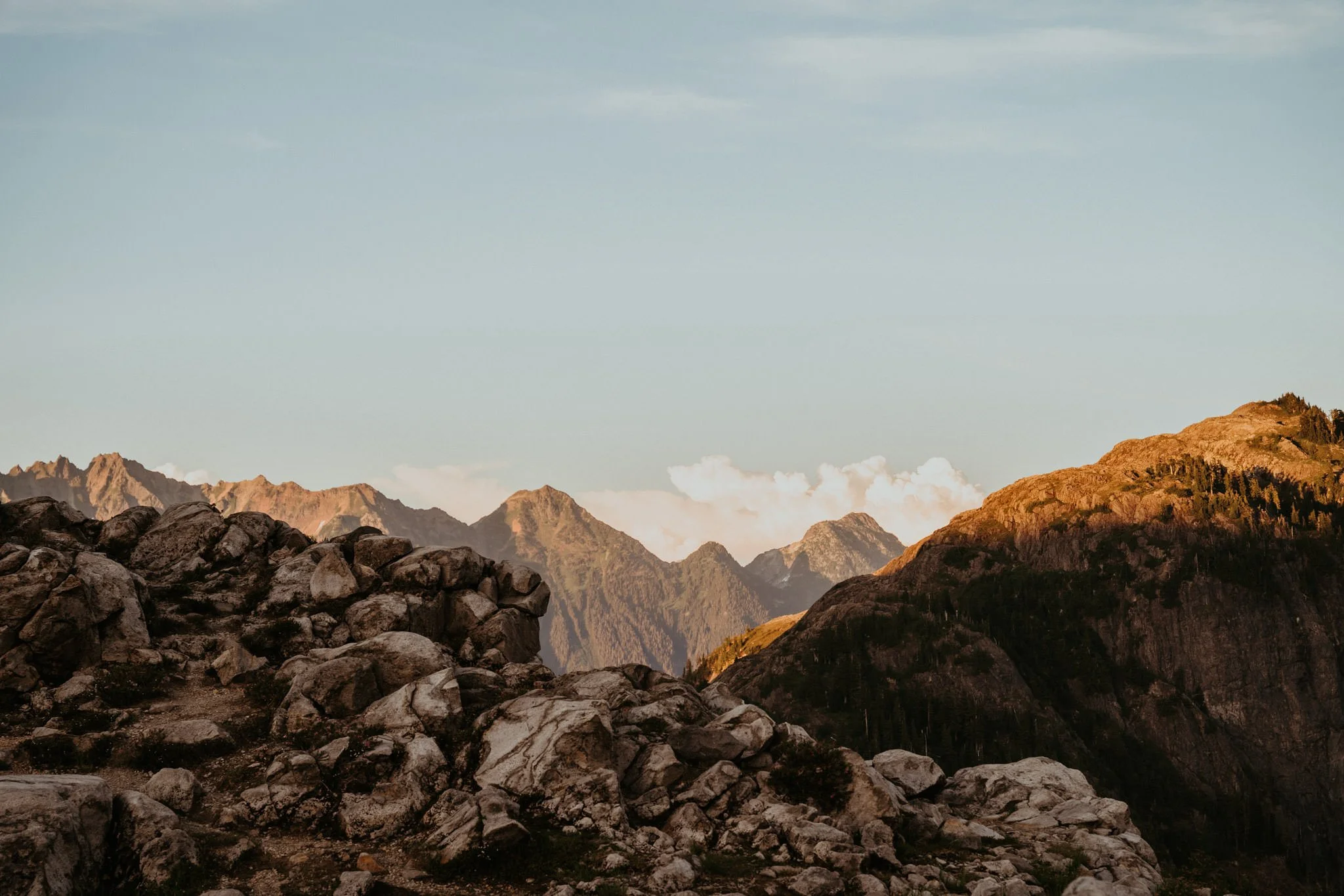 Smoky sunset haze during this early October elopement (safe AQI day to hike in the Cascades)
